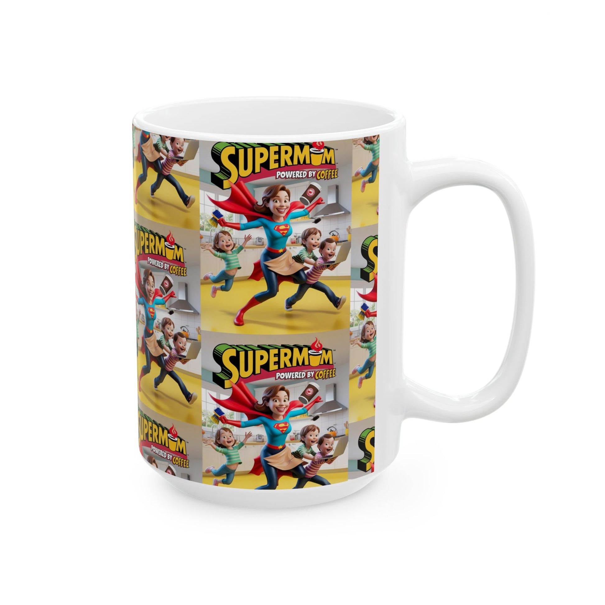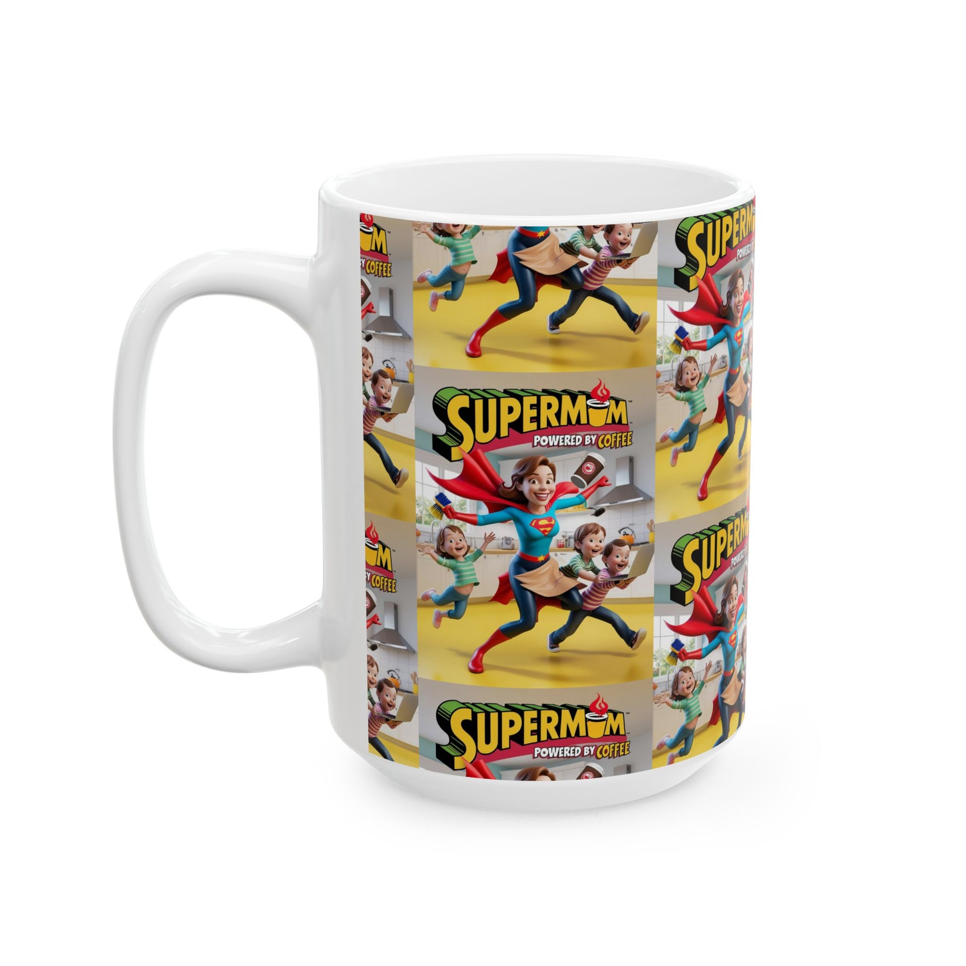 Coffee First Adulting Ceramic Mug - Cute Comic Super Mom Design